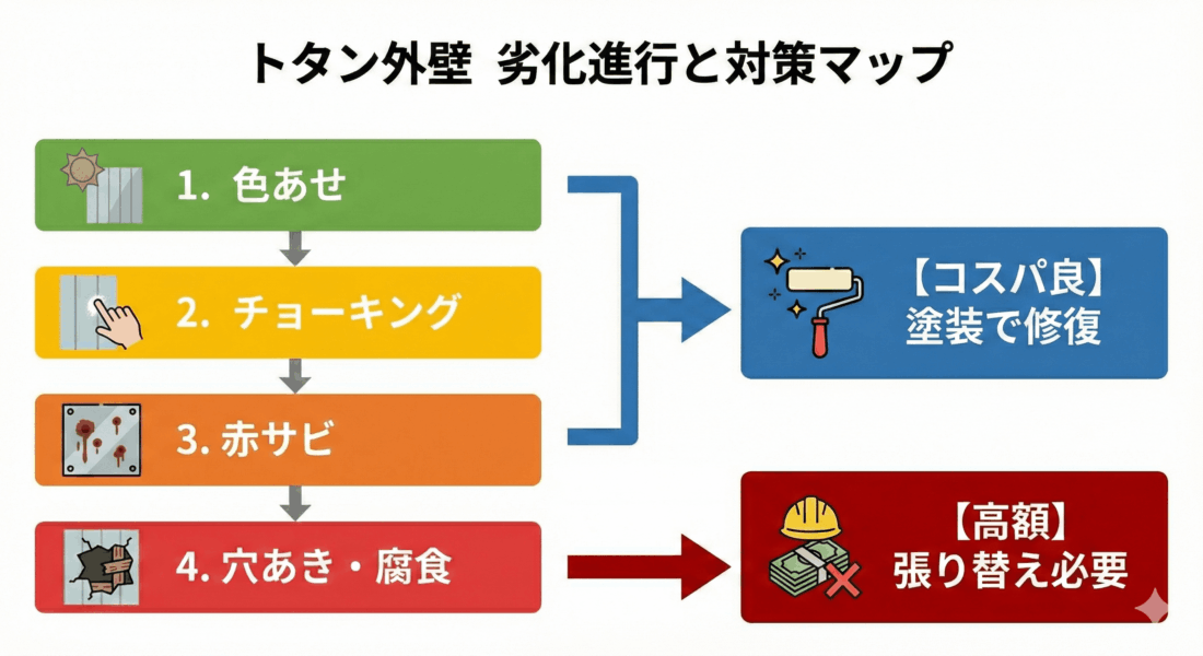 トタン外壁において「放置」は最大の敵です。