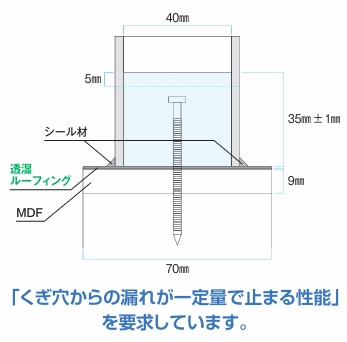 これにより、釘穴からの漏水リスクを最小限に抑えます。(試験詳細はカタログをご覧ください)