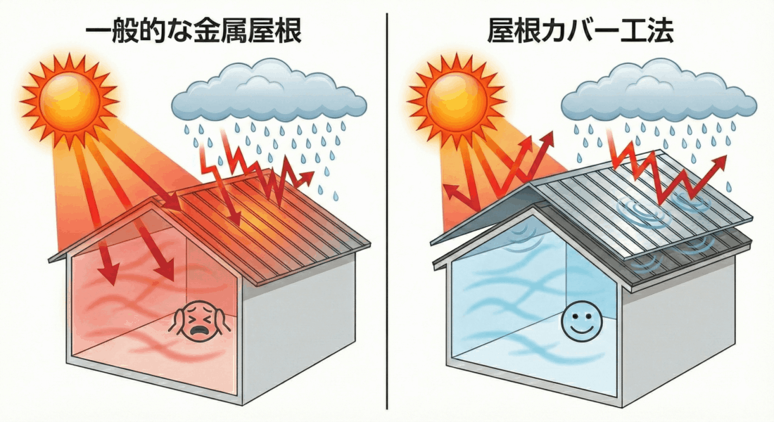 「夏は暑い?」→ カバー工法なら断熱効果がアップ!