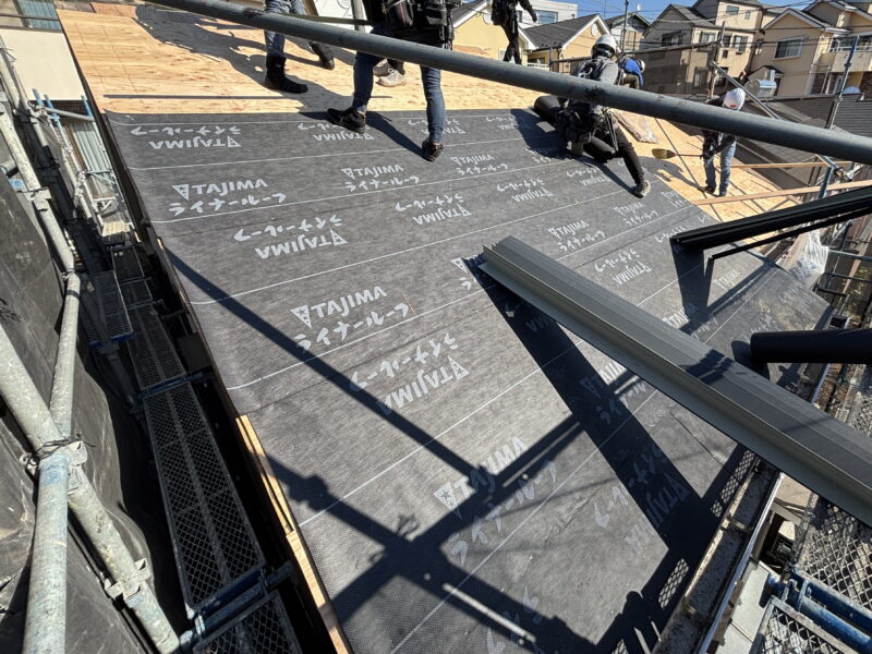 屋根の葺き替えに使用させていただいたルーフィングは TAJIMAルーフィング ニューライナールーフィング です。