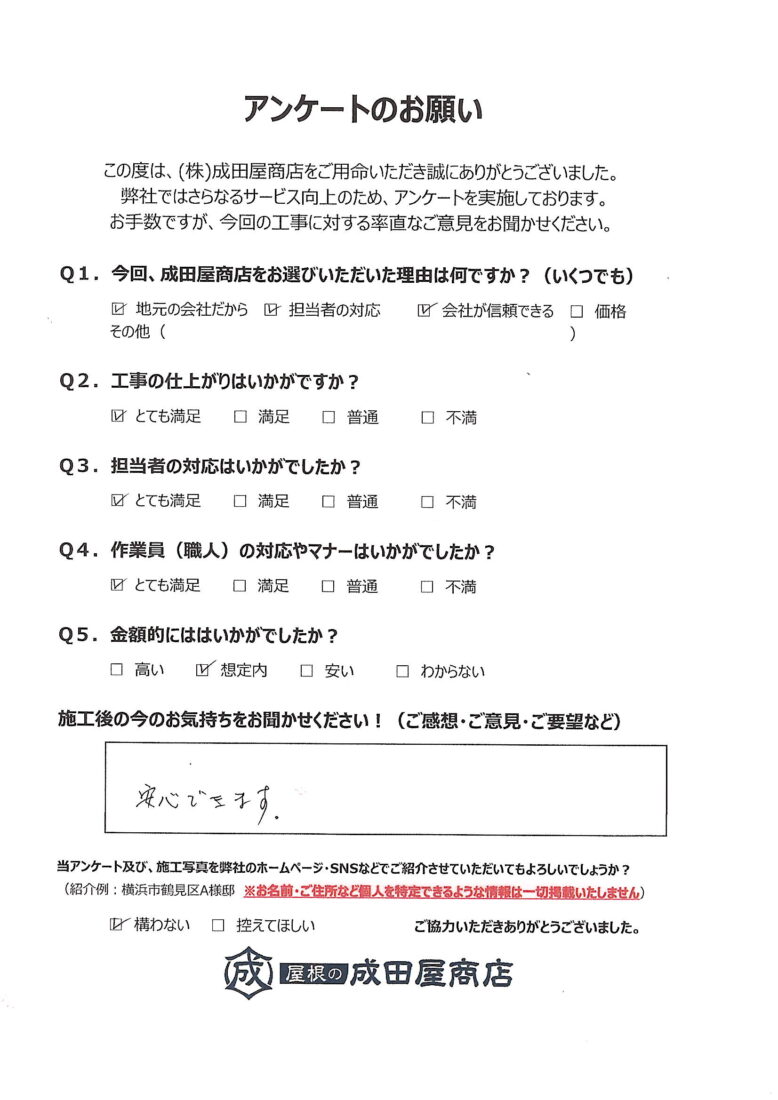 この度は、地元横浜市鶴見区の成田屋商店に工事をご用命いただき、誠にありがとうございました。