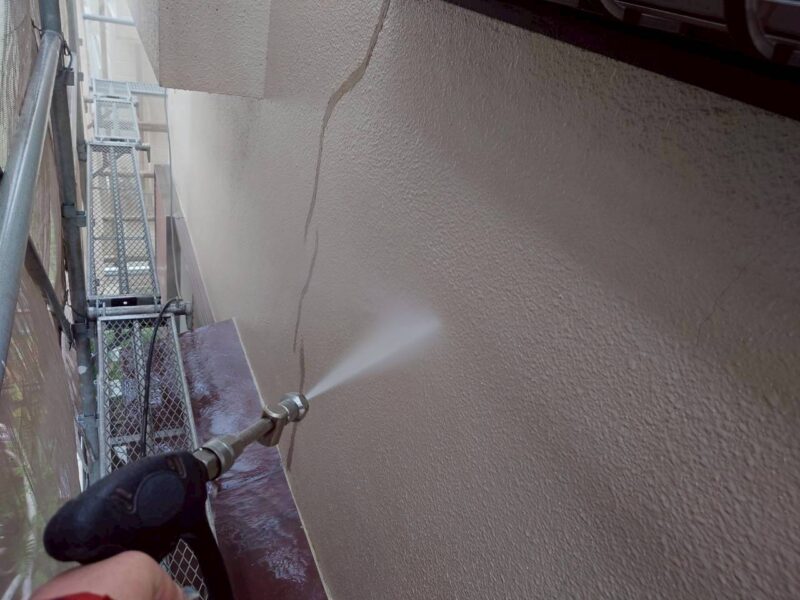 高圧洗浄で付着している汚れやコケなどを徹底的に除去した後、十分に乾燥させます。