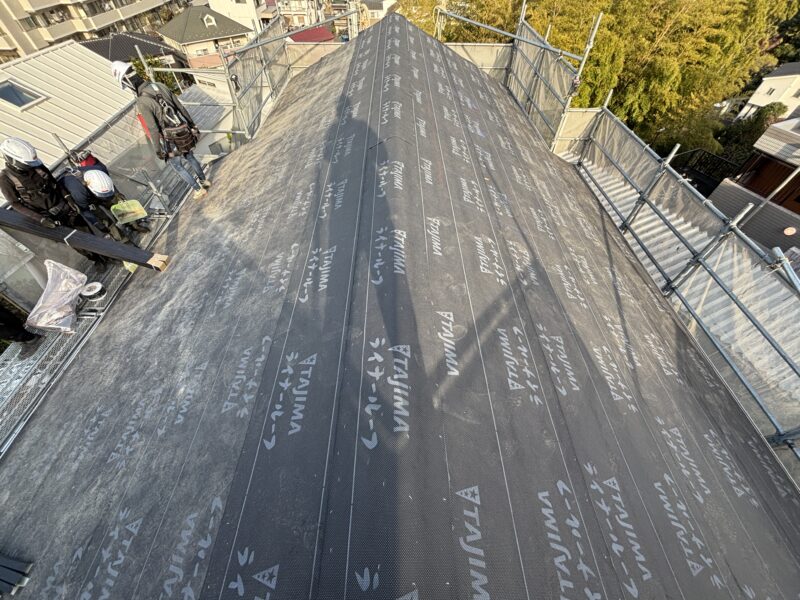 屋根の葺き替えに使用させていただいたルーフィングは TAJIMAルーフィング ニューライナールーフィング です。