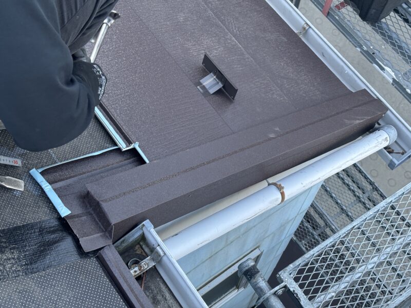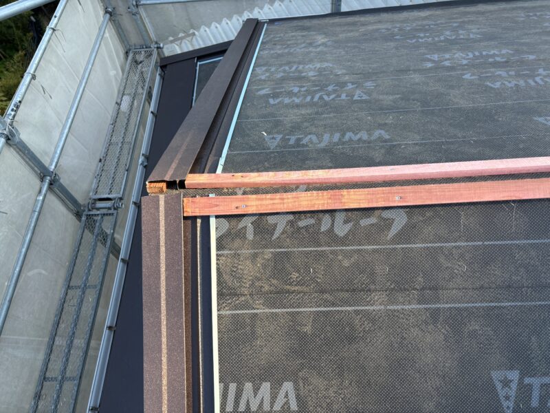 ケラバ及び棟は下地木材を施工した後、板金を取り付けます。